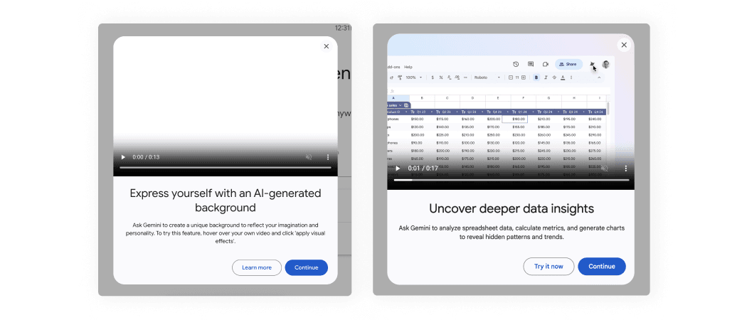 When AI features are added to an existing product, they can’t just appear silently in the background. Users need a moment of orientation – a quick, clear introduction that explains why the AI is there, what it can do, and how to try it. This is where banners, modals, and other soft prompts come in.
