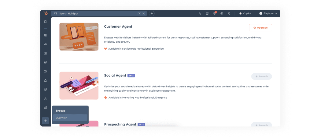 HubSpot provides users with a dedicated AI features page, where they can review all the tools, understand their value, and try them out.
