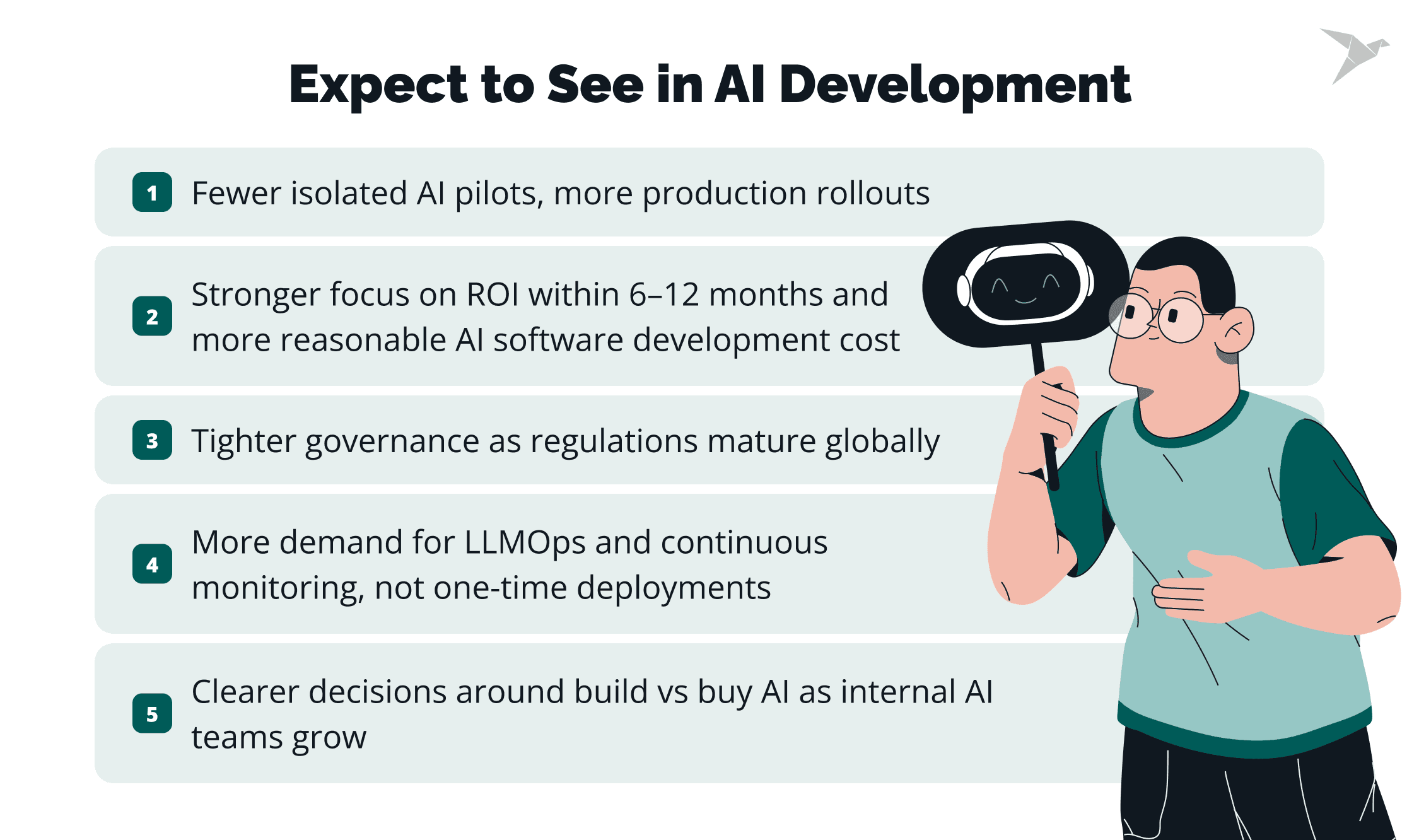 - Stronger focus on ROI within 6–12 months and more reasonable AI software development cost.