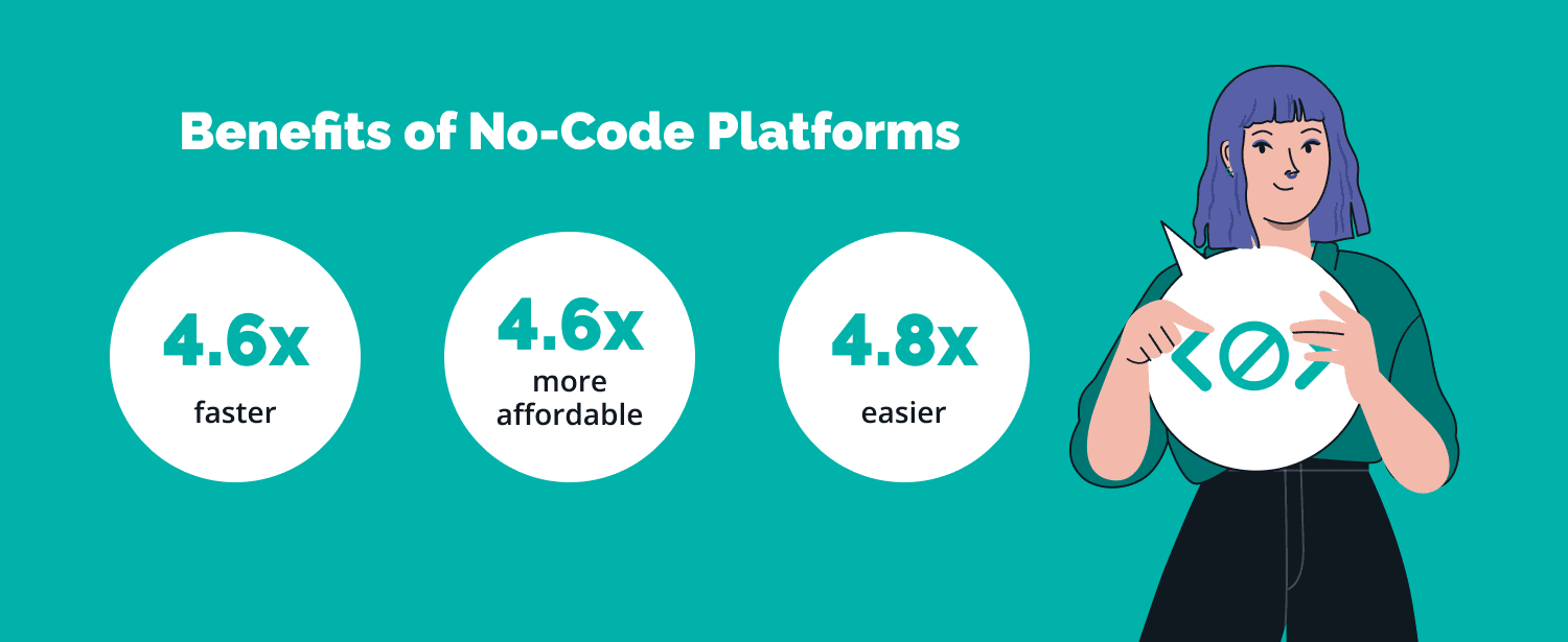According to a Nocodecensus survey, no-code development tools enable them to create software 4.6 times faster than traditional programming.