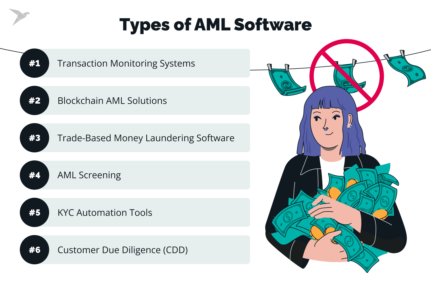 There are various forms of AML software, each designed to tackle particular aspects of anti-money laundering initiatives. These include: