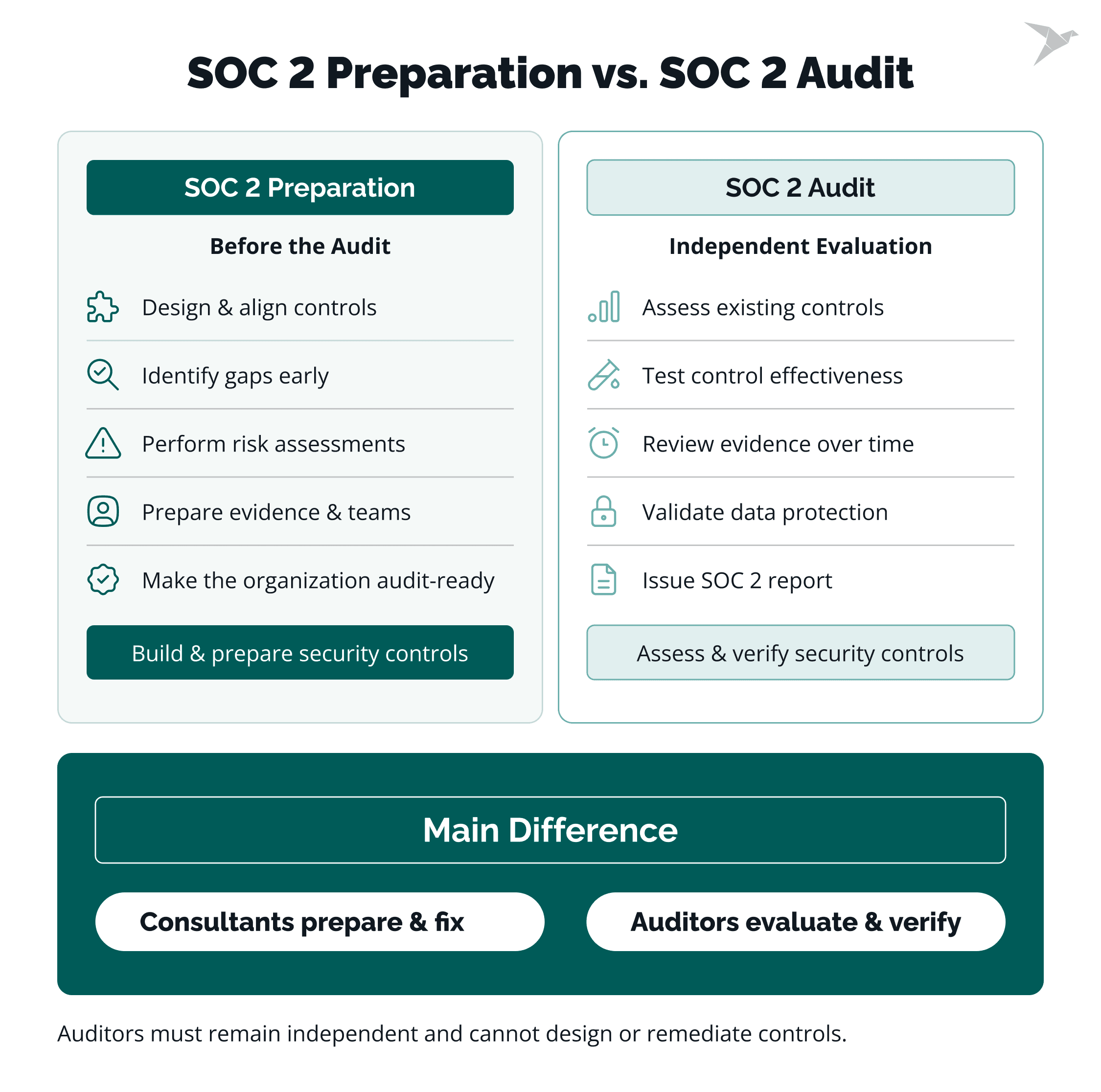 SOC 2 Preparation vs. SOC 2 Audit: What's the difference?