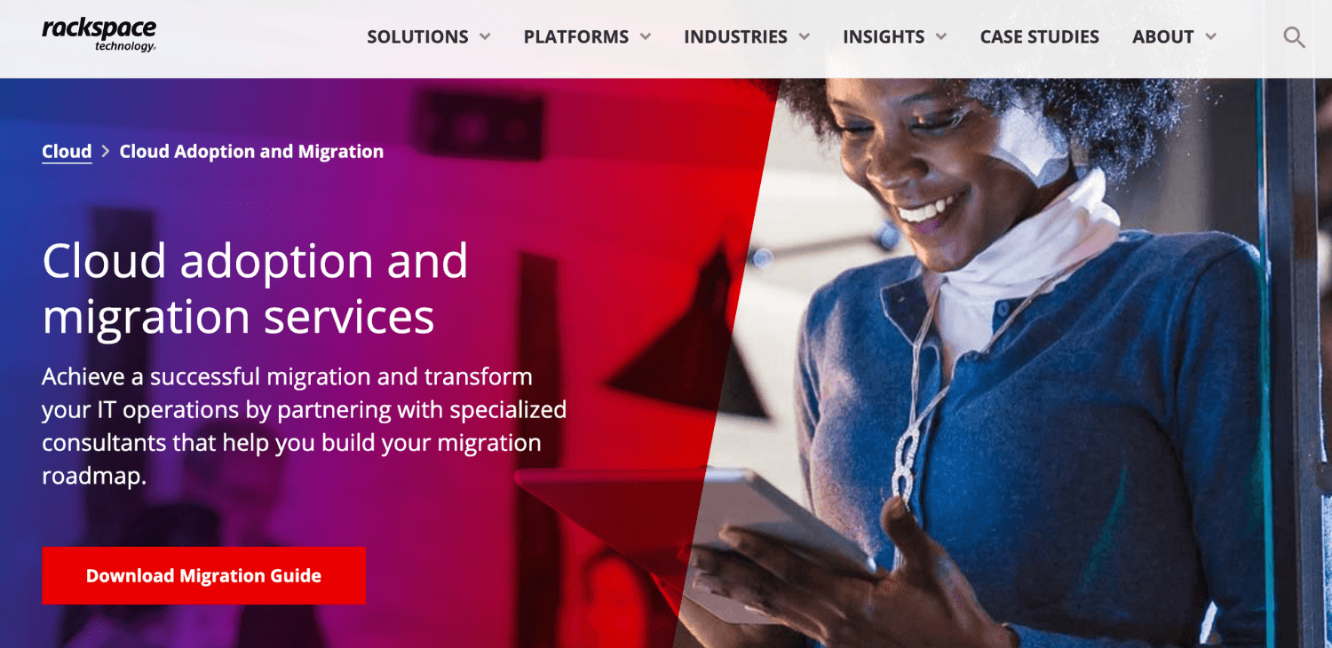 Rackspace Technology supports complex enterprise cloud migration initiatives and is widely known for pairing migration with long-term managed cloud services. The company provides cloud migration consulting services that cover assessment, planning, and execution across public, private, and hybrid cloud environments.
