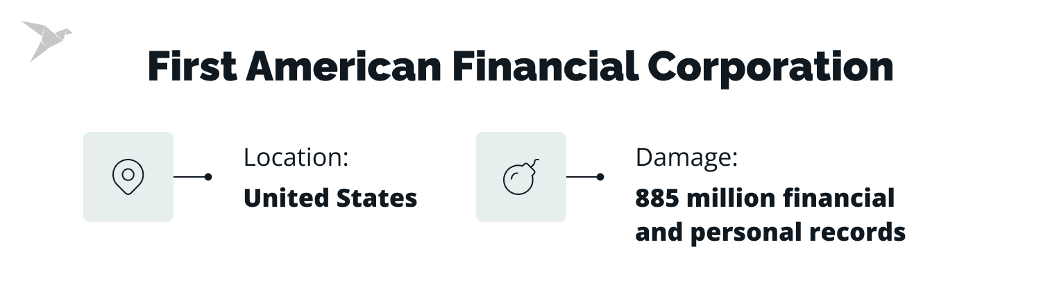 On May 24, First American Financial Corporation faced a data breach involving up to 885 million financial and personal records linked to real estate operations. The documents, dated back to 2003, were exposed as a result of a common website design error. The breached data included bank account information, mortgage and tax records, driver licenses images, social security numbers, and other sensitive information.