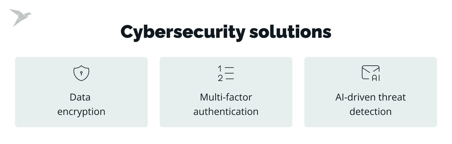 Financial institutions often face such threats as phishing, malware infections, ransomware, unencrypted data breaches, unpatched vulnerabilities, supply chain attacks, DDoS attacks, trojans, and AI-related risks.
