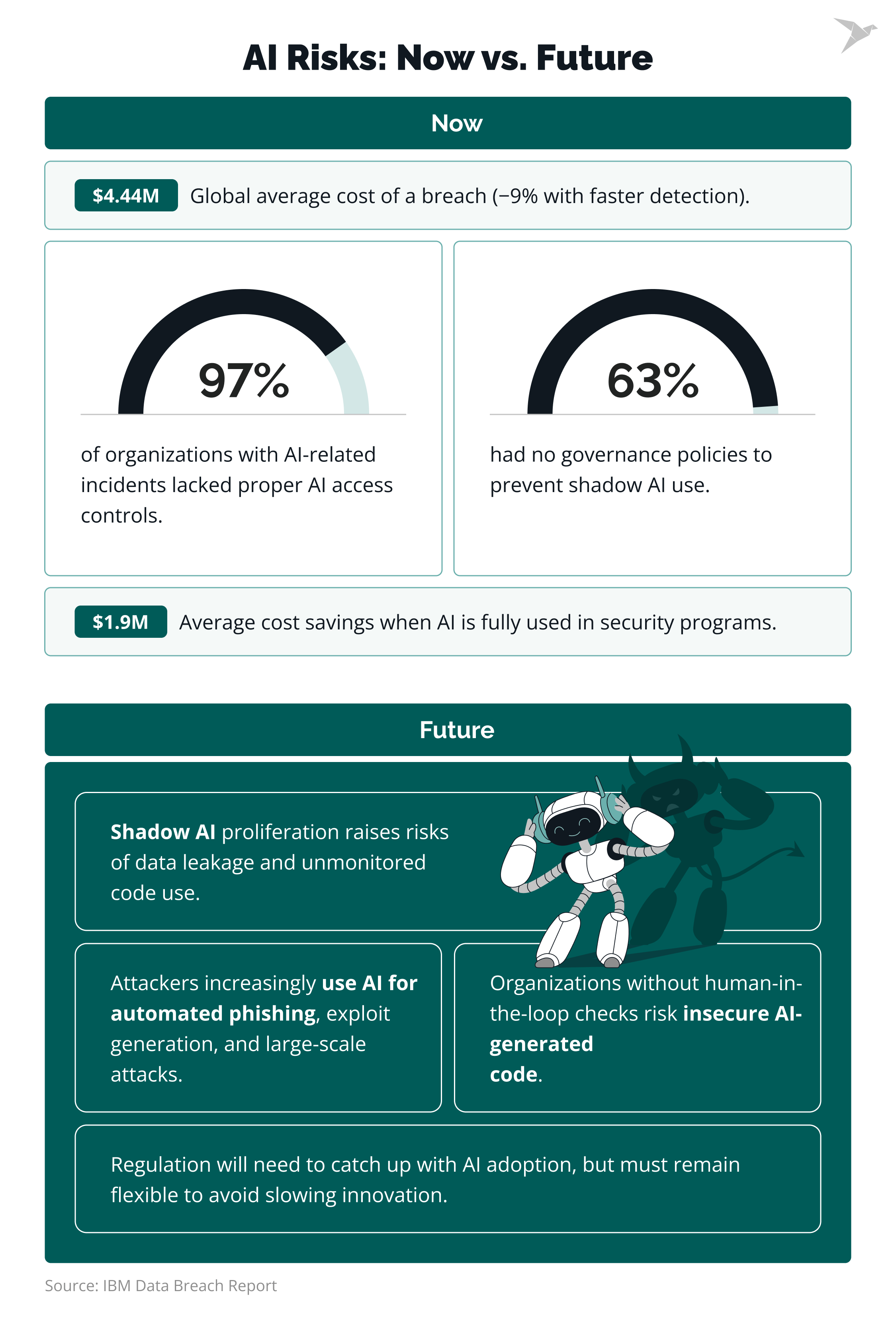 - In the near future, DevSecOps teams will face challenges regarding shadow AI, unsafe AI-generated code, and attack automation (e.g., supply-chain, phishing).