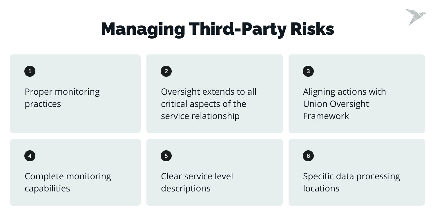 - Implementing proper monitoring practices for risks associated with ICT third-party providers.