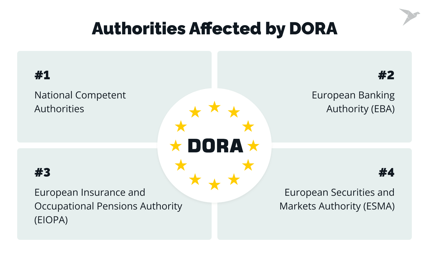 - European Supervisory Authorities (ESAs). These are institutions such as the European Banking Authority (EBA), the European Insurance and Occupational Pensions Authority (EIOPA), and the European Securities and Markets Authority (ESMA). They all play roles in ensuring that the regulation is uniformly applied across the EU.