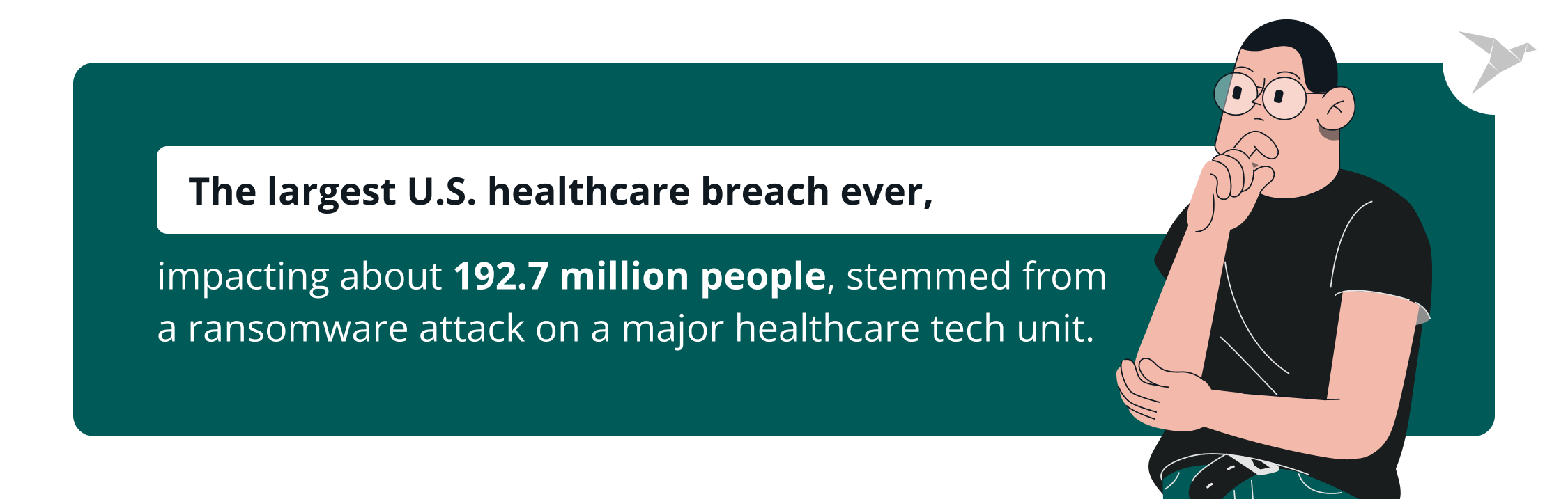 The largest U.S. healthcare breach ever, impacting about 192.7 million people, stemmed from a ransomware attack on a major healthcare tech unit.