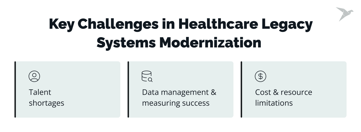 Deloitte research shows that the main modernization challenges for healthcare organizations are