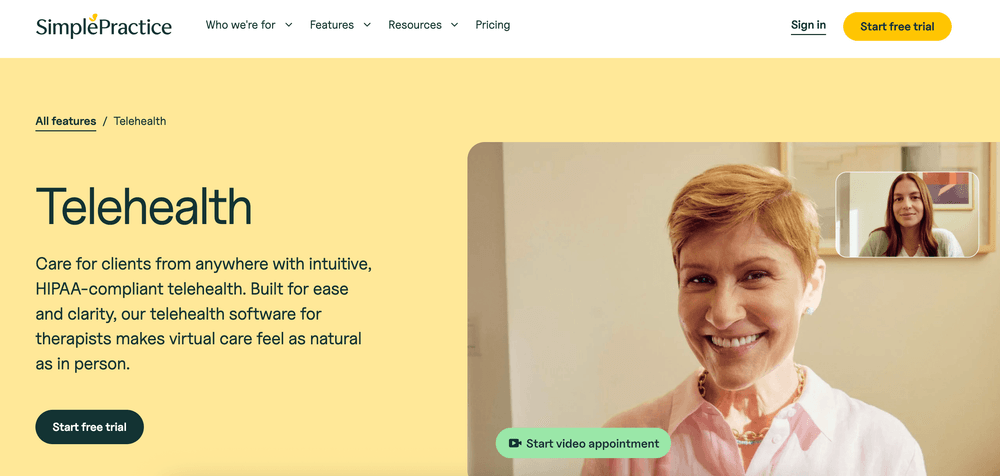 SimplePractice combines telehealth with practice management: scheduling, billing, and documentation all in one place. It’s particularly popular among mental health professionals who value simplicity and security.