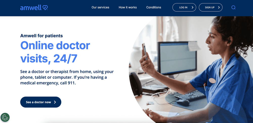 Amwell provides a comprehensive virtual care ecosystem with EHR integration, white-label options, and secure communication tools. It’s used by top U.S. hospital systems to connect patients, clinicians, and specialists through a unified telehealth experience.