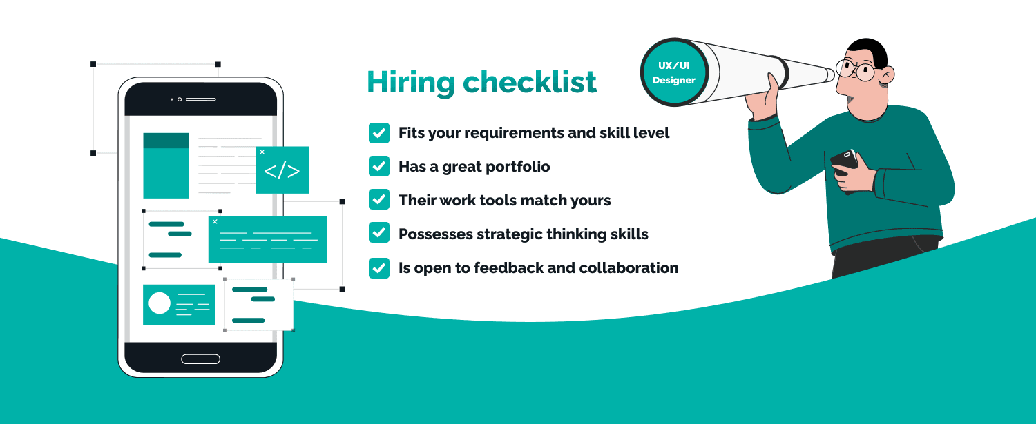 If you want to hire a UX/UI designer who will perfectly match your needs, they must tick all the boxes below.