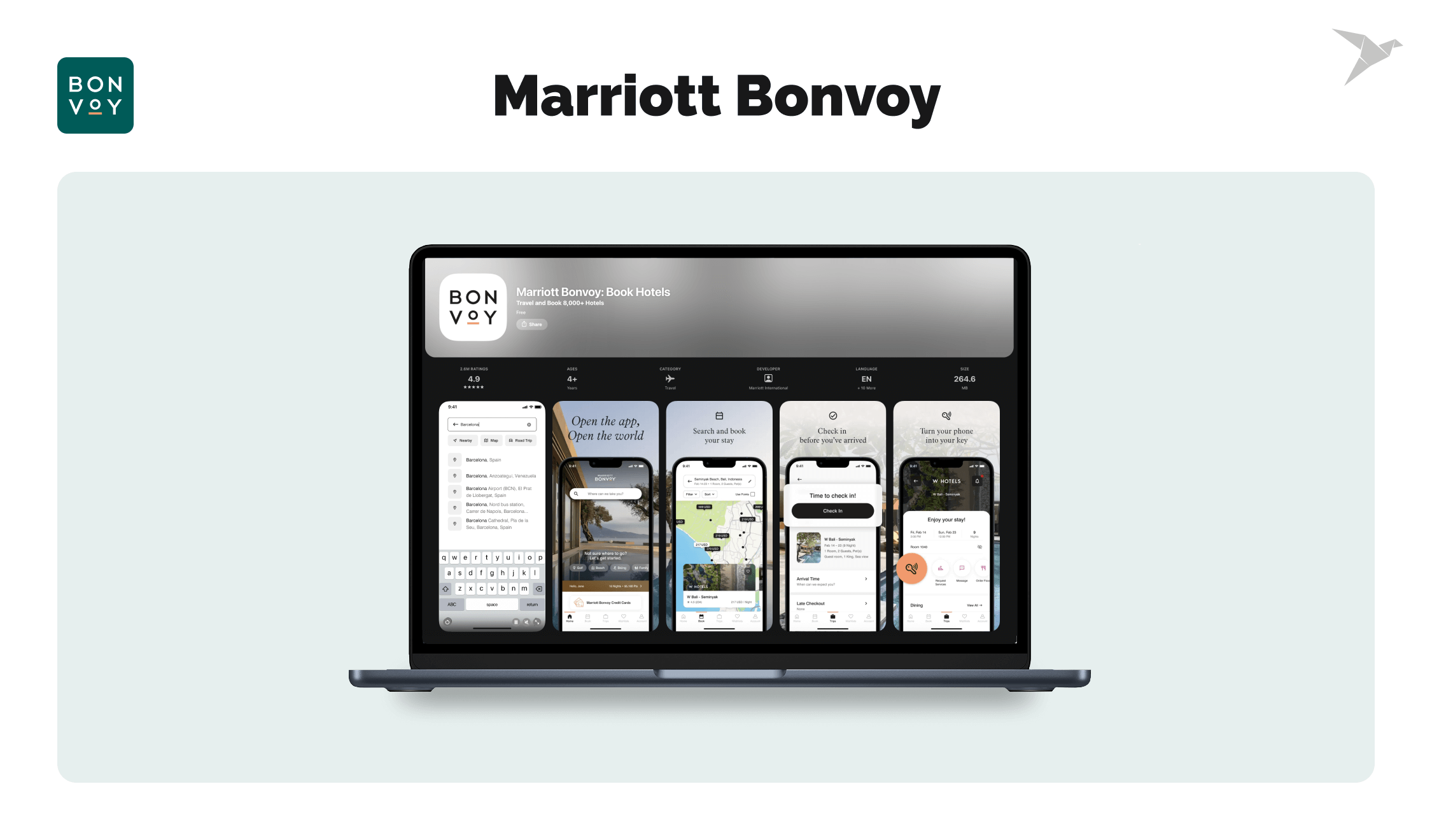 Marriott’s app is a perfect example of a loyalty powerhouse. Guests can manage bookings, explore personalized “Road Trips,” chat with staff in real time, and get notified about room readiness or promotions via push alerts, all without hitting the front desk.