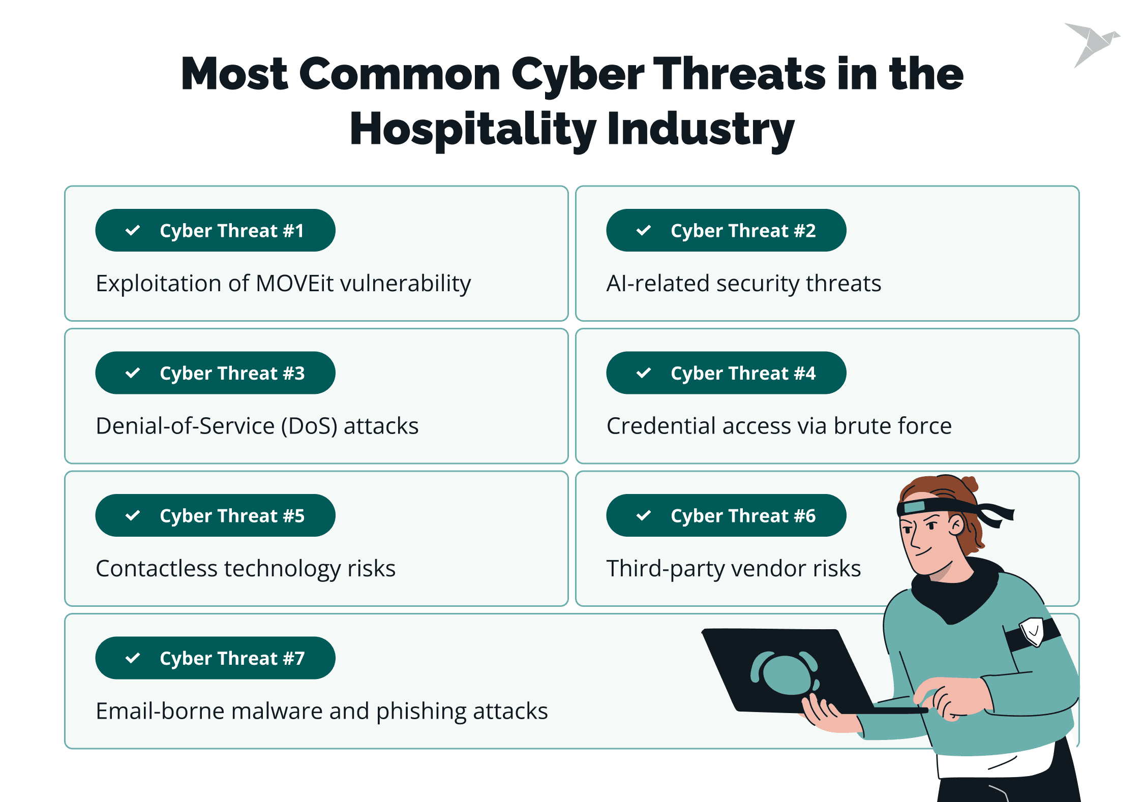 - Common cyber security threats in tourism and hospitality industry, their origins, and ways to protect your systems.