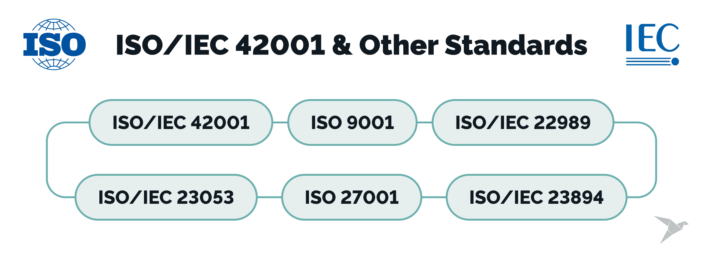 ISO/IEC 42001 is designed to complement and integrate seamlessly with other standards. Let’s discuss its relations with other standards in forming a unified approach to organizational governance.