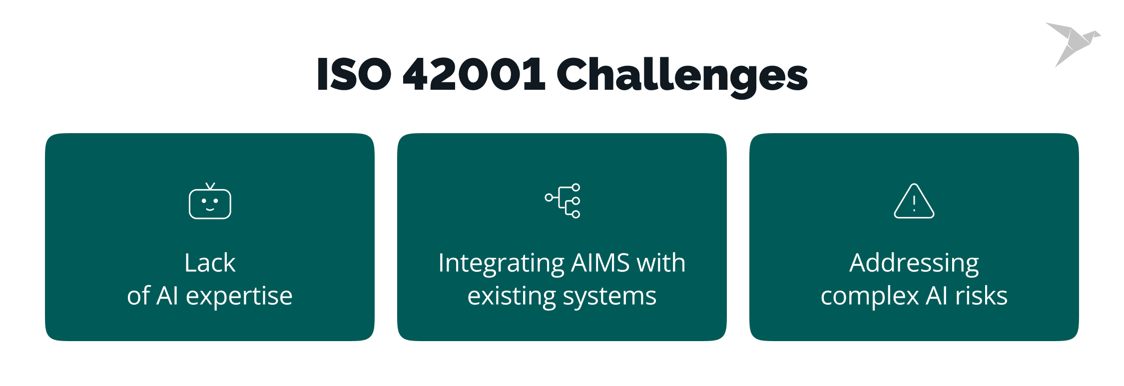 Organizations often face several hurdles when working to align with ISO 42001, particularly as they aim to manage AI risks.