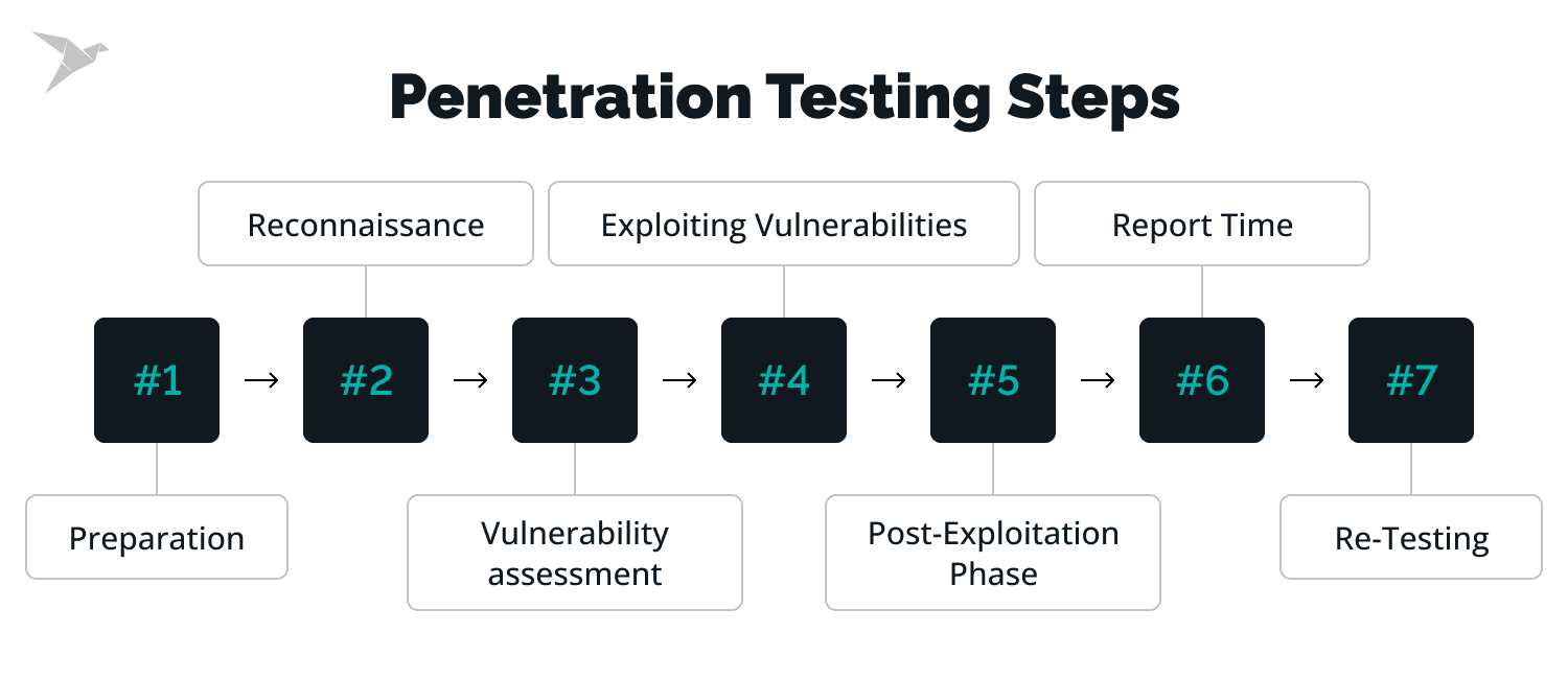 - Check-In: The tester might return to re-run the tests to ensure those weaknesses are patched up. This step isn't always part of the process but might be requested by the client for added peace of mind.