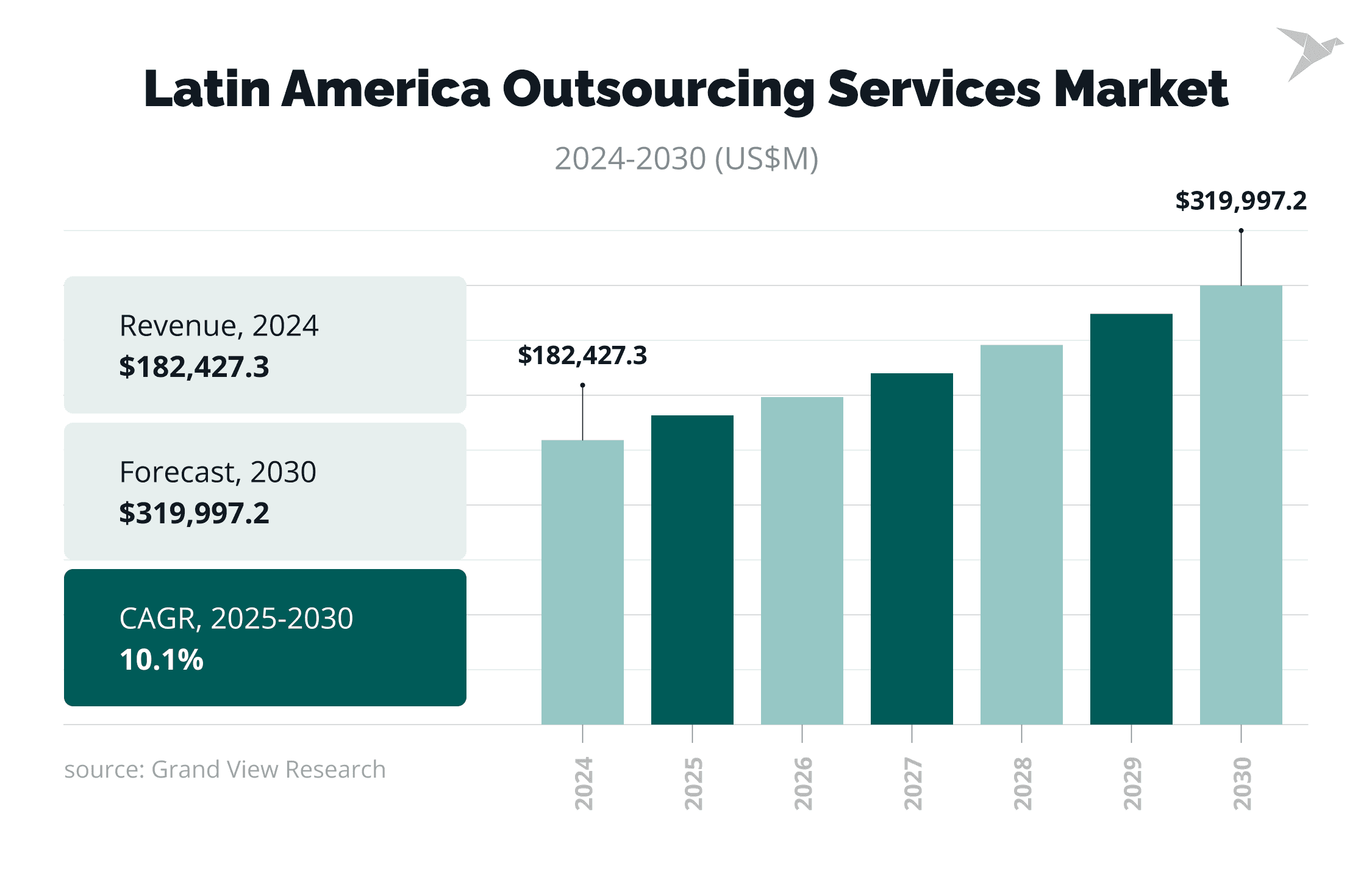 These questions matter even more now, as the region continues to grow quickly. The Latin American IT outsourcing services market reached about $182.4 million and is expected to grow to almost $320 million at an annual rate of 10.1% by 2030, according to Grand View Research.