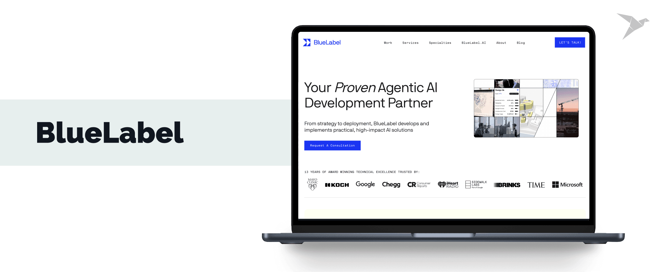 BlueLabel positions itself as a generative AI development agency with a strong product and design emphasis. The company’s messaging leans toward building practical generative AI solutions and agents that fit into business processes, which can be helpful when UX and adoption are major risks. It’s usually considered by teams that want a studio-style partner for customer-facing AI experiences, often used for customer engagement experiences where UX adoption matters.