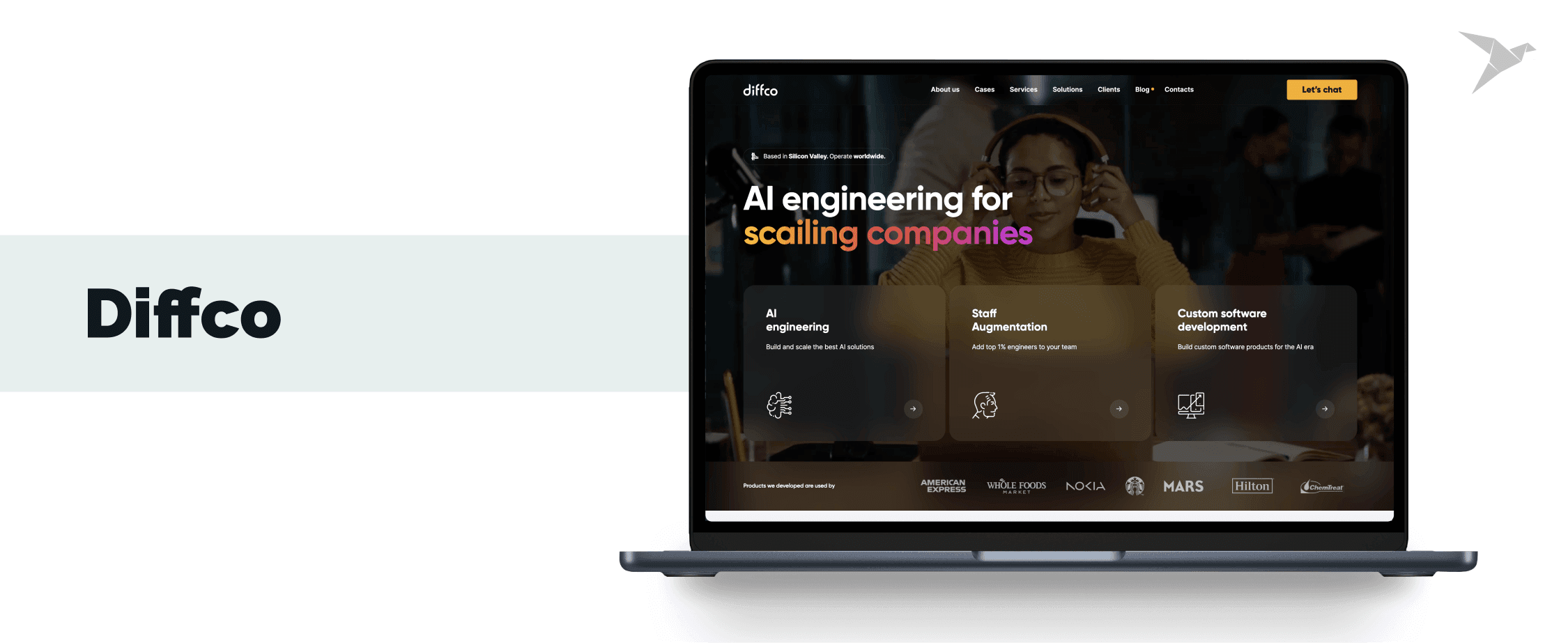 Diffco presents itself as an AI-first engineering partner focused on building end-to-end AI systems that plug into real workflows. Its service positioning is broad, including LLM solutions, AI agents, RAG systems, predictive ML, and computer vision, so it tends to appeal to teams that want one vendor to cover multiple AI directions. Its broad positioning includes AI agents and workflow automation. The messaging emphasizes production readiness rather than isolated demos, which is a useful signal when delivery risk is high.