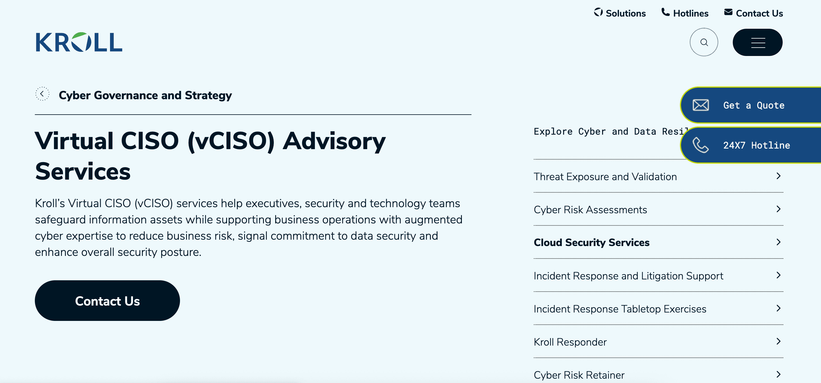 Kroll is a global risk management and investigations firm with a strong cyber arm. Kroll embeds skilled CISOs into client organizations to safeguard sensitive data and improve overall security posture. Their experts guide strategy, set privacy and security policies, and work with boards and executives to align security with business goals.