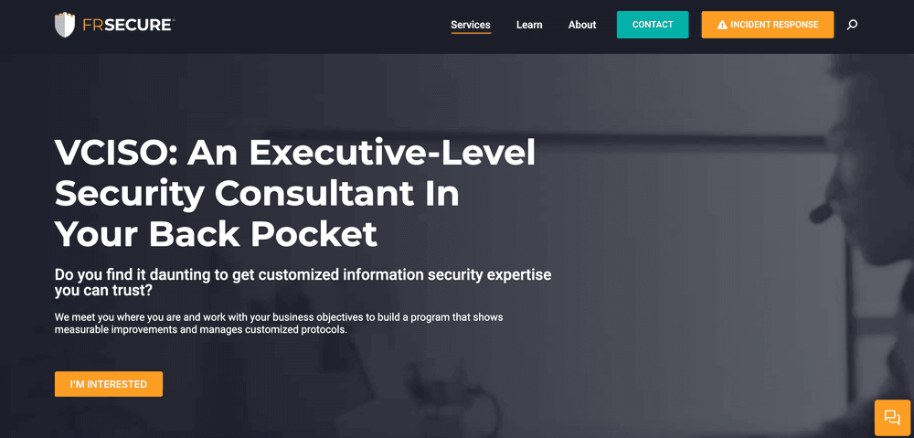 FRSecure is a cybersecurity consulting firm specializing in compliance and vulnerability assessments. FRSecure offers virtual CISO engagements that meet an organization's security programs and then build a custom roadmap to advance them. They begin with comprehensive risk assessments of the client’s current security maturity and then continuously coach and refine the security program.