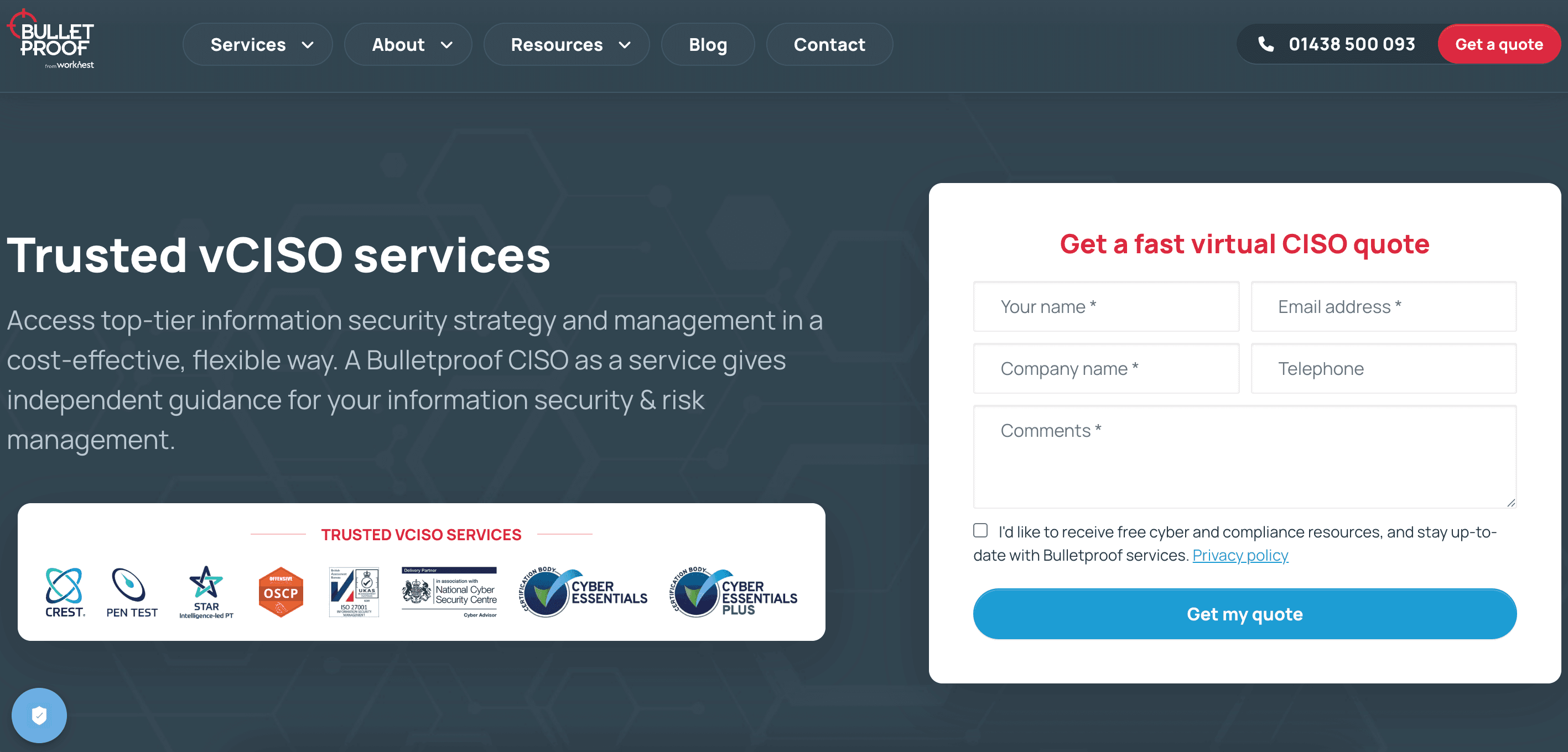 Bulletproof is a UK-based CREST-accredited cybersecurity firm. Bulletproof offers CISO-as-a-Service under its “Bulletproof CISO” brand, providing flexible vCISO packages. They market trusted virtual CISO consulting solutions that deliver independent strategic guidance on information security and risk management.