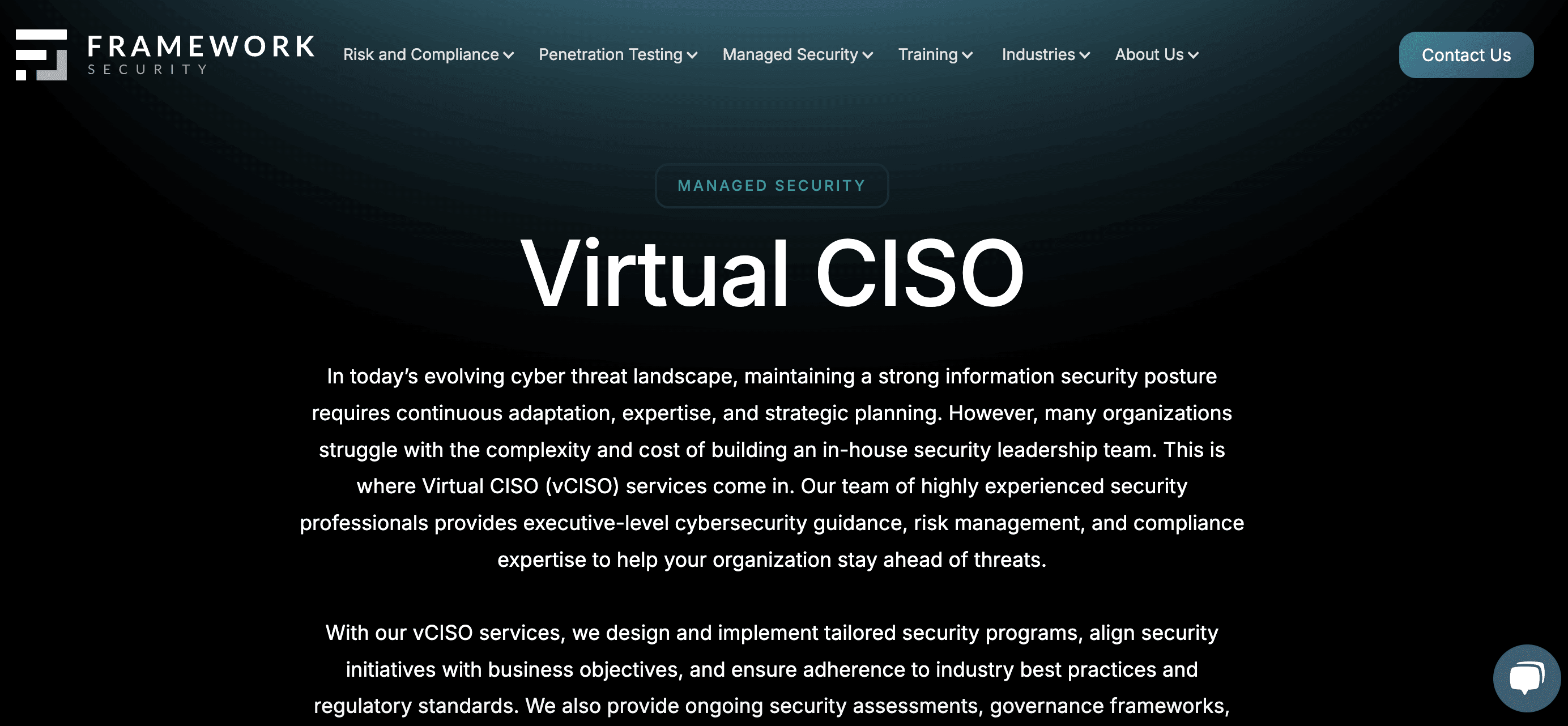 Framework Security is a U.S.-based cybersecurity advisory firm specializing in vCISO and managed security services. Framework’s virtual CISO team of experienced cybersecurity professionals provides executive-level guidance in cybersecurity, risk management, and regulatory compliance. They design and implement customized security programs that align with a company’s business objectives and regulatory needs.
