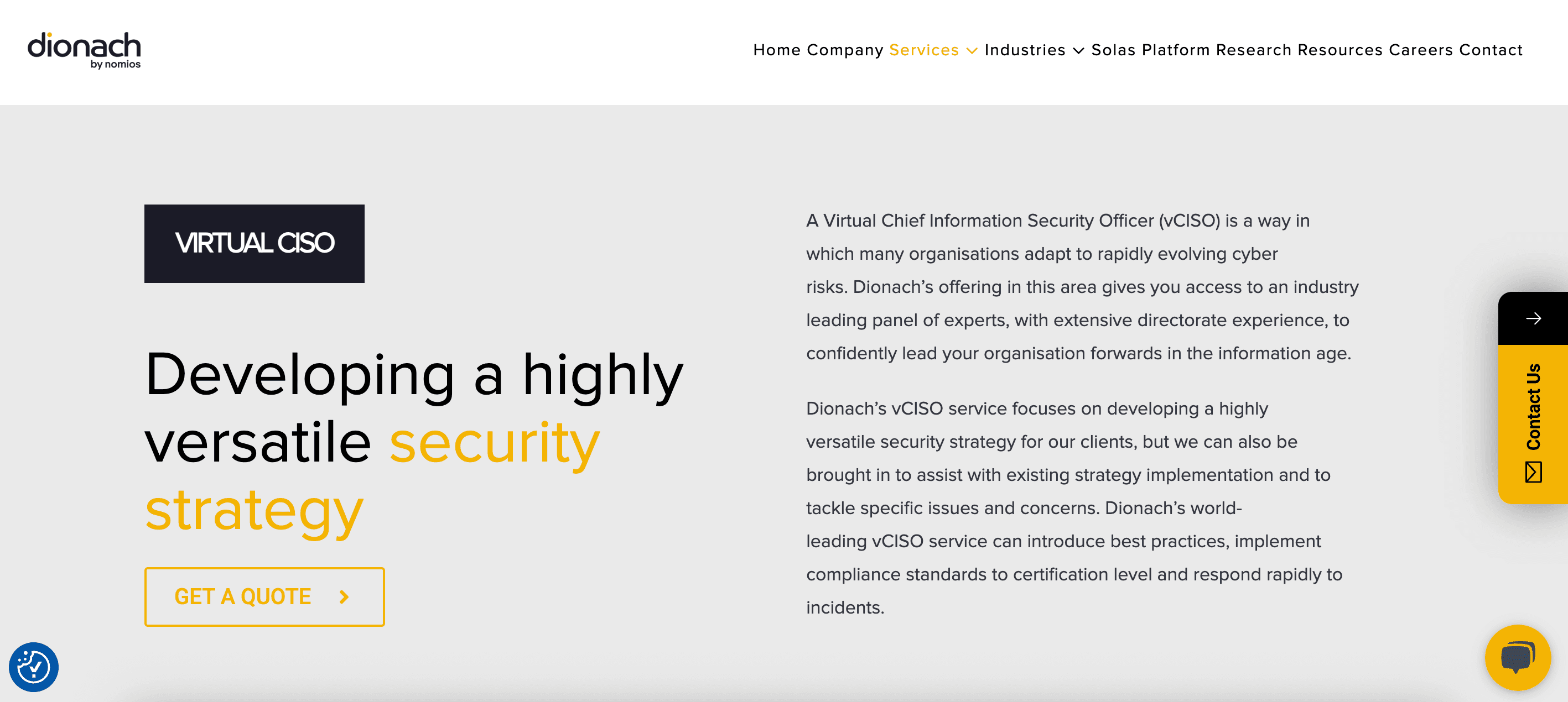 Dionach is a Scottish cybersecurity firm known for compliance management expertise, threat intelligence, and security awareness training. Dionach’s virtual CISO consulting services provide access to an “industry-leading panel of experts” to guide security strategy. They emphasize developing a highly adaptable security program that can respond rapidly to evolving cyber threats.